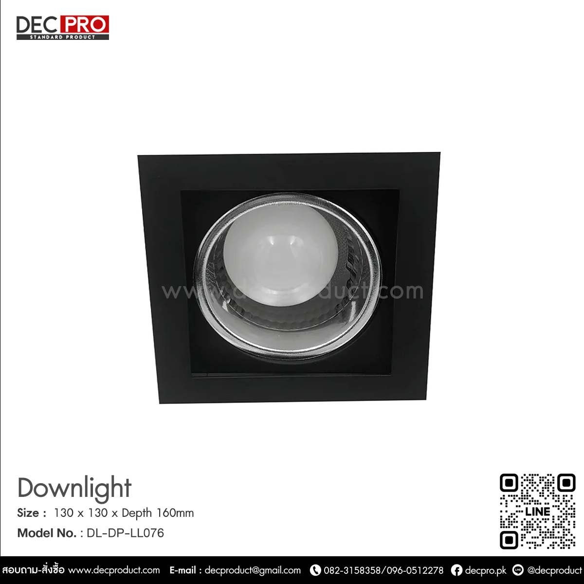 Size : L130 x W130 x H160 mm. (included bulb depth) Cut out : 114 x 114 mm. Lamp Type : E27 x1 pc (Prefer LED Blub 6W – 15W) Material : Powder Coated Steel Weight : 0.6 KG.