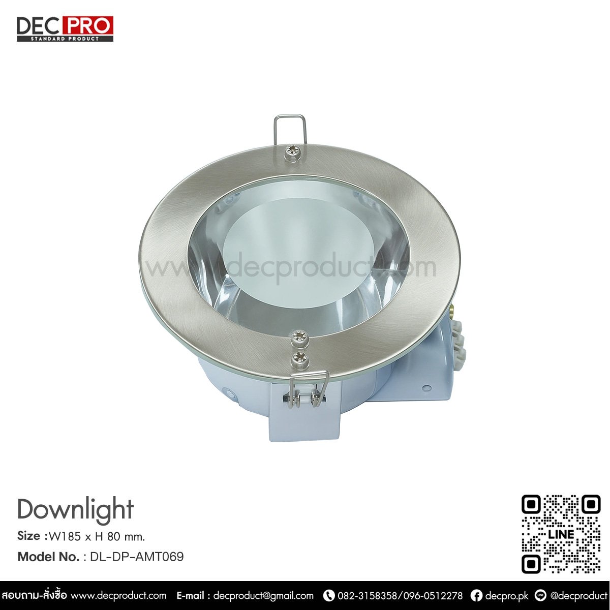 โคมไฟดาวไลท์หน้ากลม E27 Size: W185 x H80 mm Color : Silver Cut-Out : 135 mm. Material : เหล็ก + แก้ว (STEEL + GLASS) Light Bulb : E27