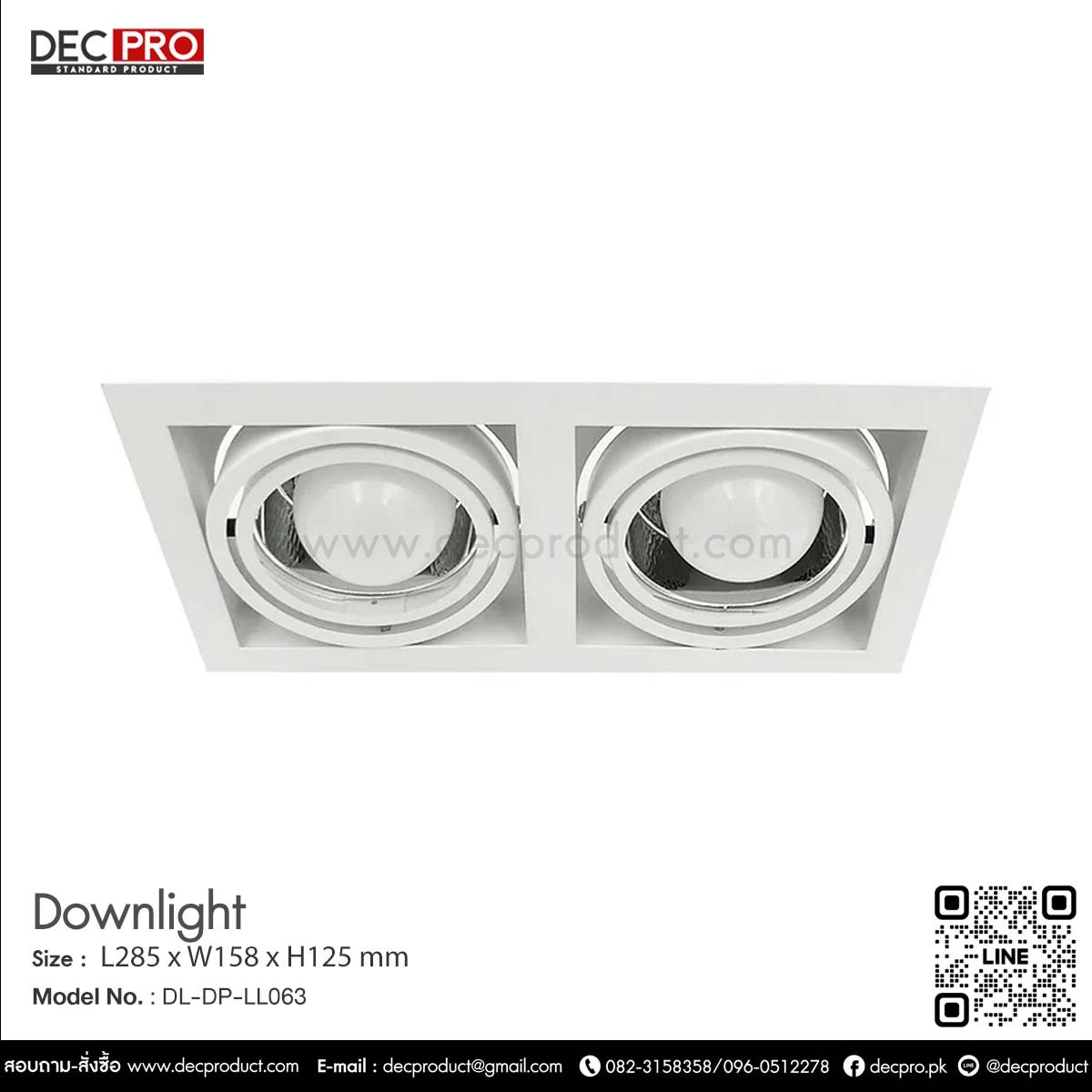 Size : L285 x W158 x H125 mm. Cut out : 130 x 260 mm. Lamp Type : E27 x2 pc (Prefer LED Blub 6W – 15W) Material : Powder Coated Steel Weight : 0.8 KG.
