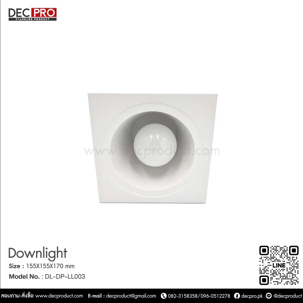 โคมไฟดาวไลท์หน้าเหลี่ยม E73 Size : 155 x 155 x 170 mm. Cut out : Ø136mm. Lamp Type : E27 x1 pc (Prefer LED Blub 6W – 15W) Material : Powder Coated Steel,Sand Blast White Weight : 0.3 KG.