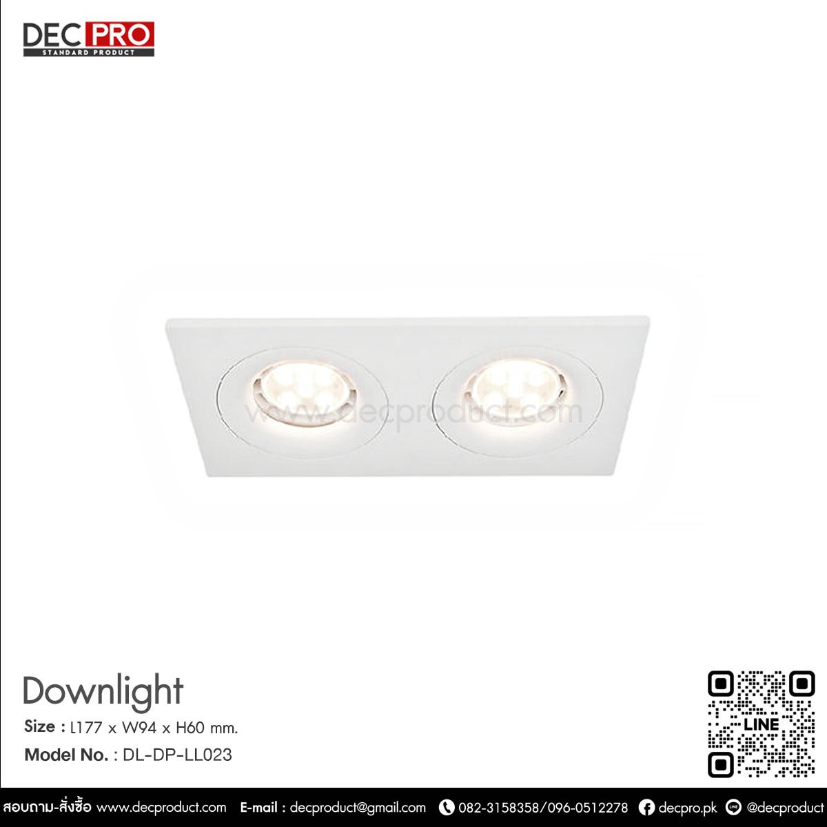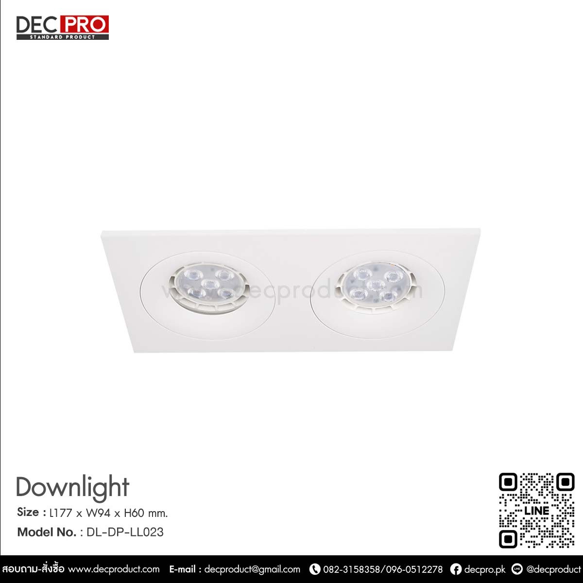 โคมไฟดาวไลท์ คู่ หน้าเหลี่ยม สีขาว Size : L177 x W94 x H60 mm. Color : white Cut out : 75 x 160mm. Lamp Type : MR 16 x2 pc (Prefer MR16 LED 7W) Material :  Die Cast Aluminum Weight : 0.3 KG