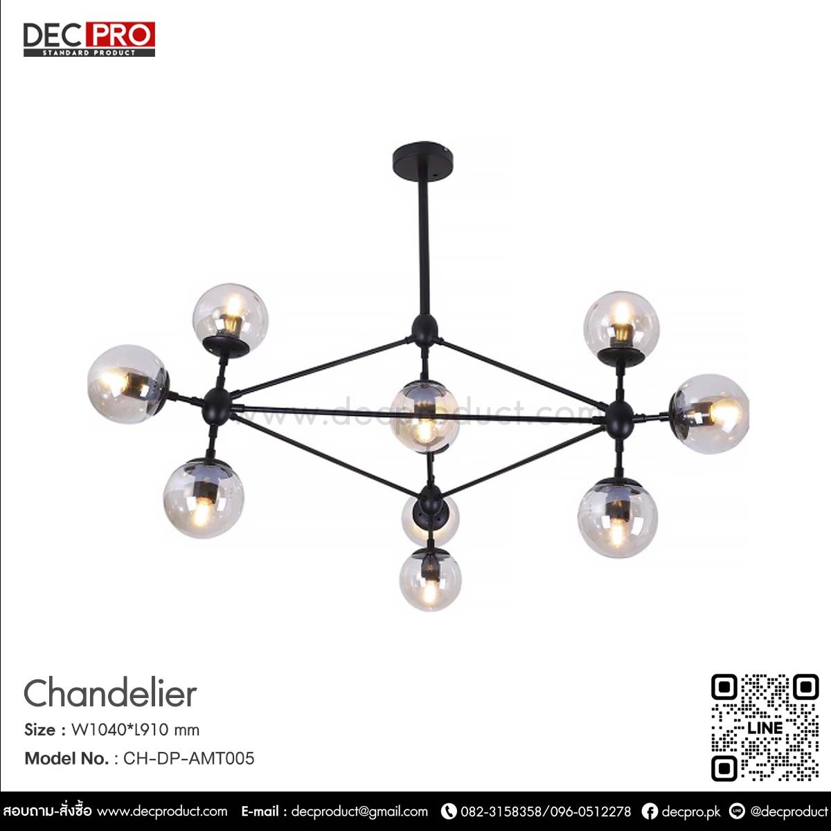 โคมไฟแขวนแก้ว Size: W650 x L900 mm. Color : Black Material : Steel & Glass Light Bulb : E27*10