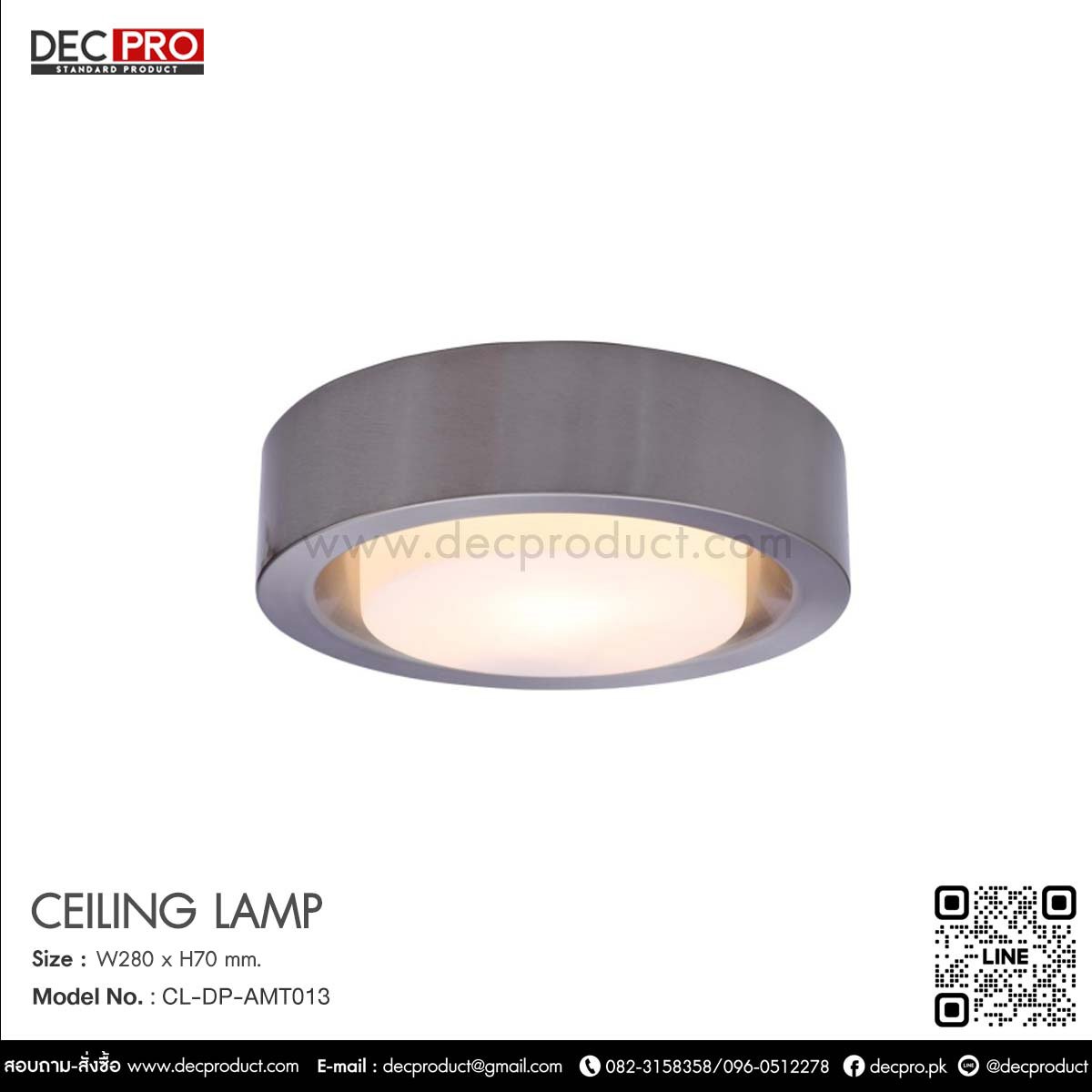 โคมไฟเพดาน E27 Size W280 x H70 mm. Color : sand Nickel Material : Steel / Glass Light Bulb :E27*2