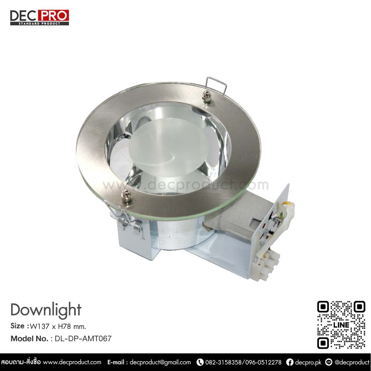 โคมไฟดาวไลท์หน้ากลม E27 Size: W137 x H78mm. Cut-Out : Ø 90 mm. Color : Silver Material : เหล็ก + แก้ว (STEEL + GLASS) Light Bulb : E27