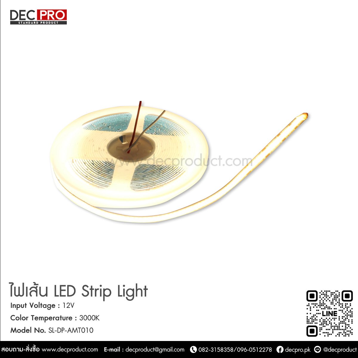 Strip Light 12W (WW) Dimension : W8 x L5000 mm. Lamp Base : LED12W/M 12V Material: Rubber Hose Light bulb: 12V/3000K